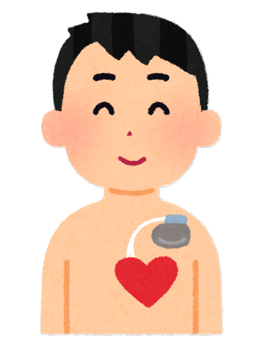 外出中に呂律障害と顔面のゆがみが出現し、救急搬送で総合病院に入院しました。心原性脳塞栓症と診断され、2週間の入院治療を受けました。入院中の心電図検査で発作性心房細動が確認されたため、循環器科に院内紹介され、手術前検査を経てICD植え込み手術を受けました。